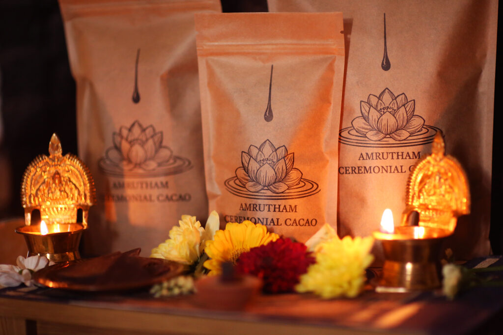 • 5 x 1kg ceremonial cacao bags or a mixture of all sizes (please disclose this to us by contacting us directly – info@amruthamgamaya.co.uk)