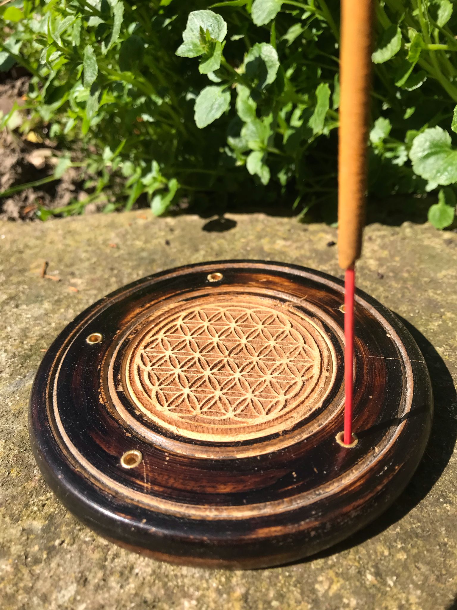 Want to learn more about the Round Wooden Incense Holder Flower Of Life?