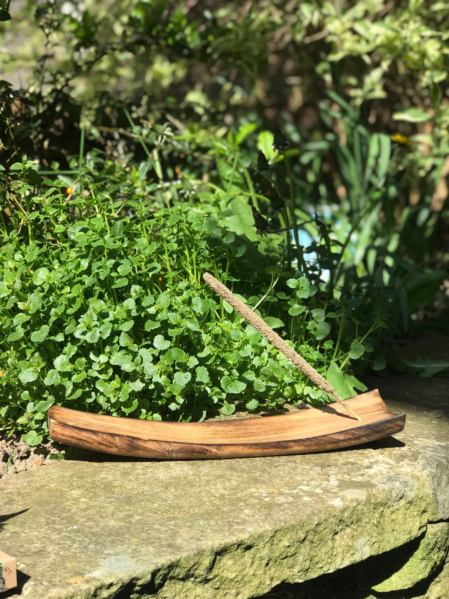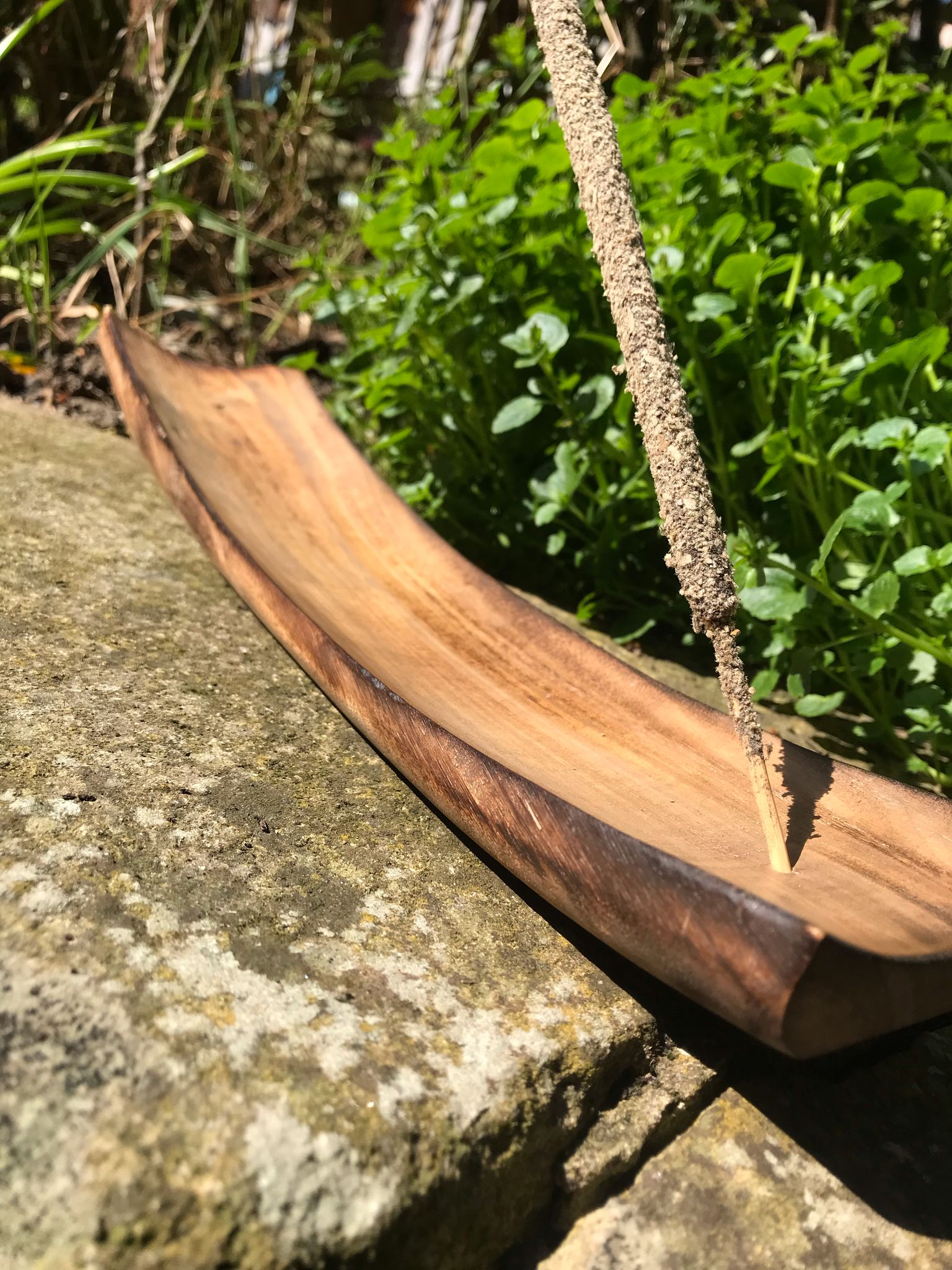 The Wooden Boat Incense Ash Catcher is a beautifully hand-carved piece that combines functionality with artistry.
